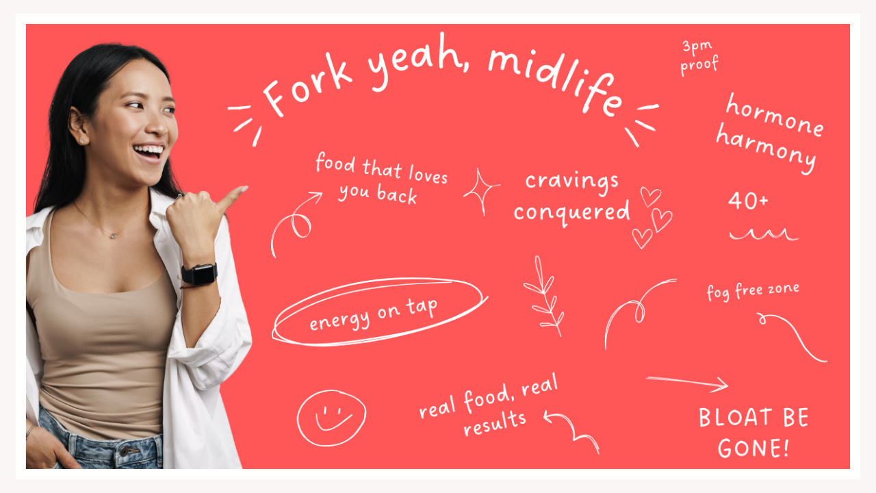 Inside my Fork Yeah, Midlife 21-day online course, we dive deeper into the science (and the simple daily tweaks) that help your body thrive — including how to stay properly hydrated without gimmicks or extremes. Because when you understand why things feel different, you can stop fighting your body and start working with it.
