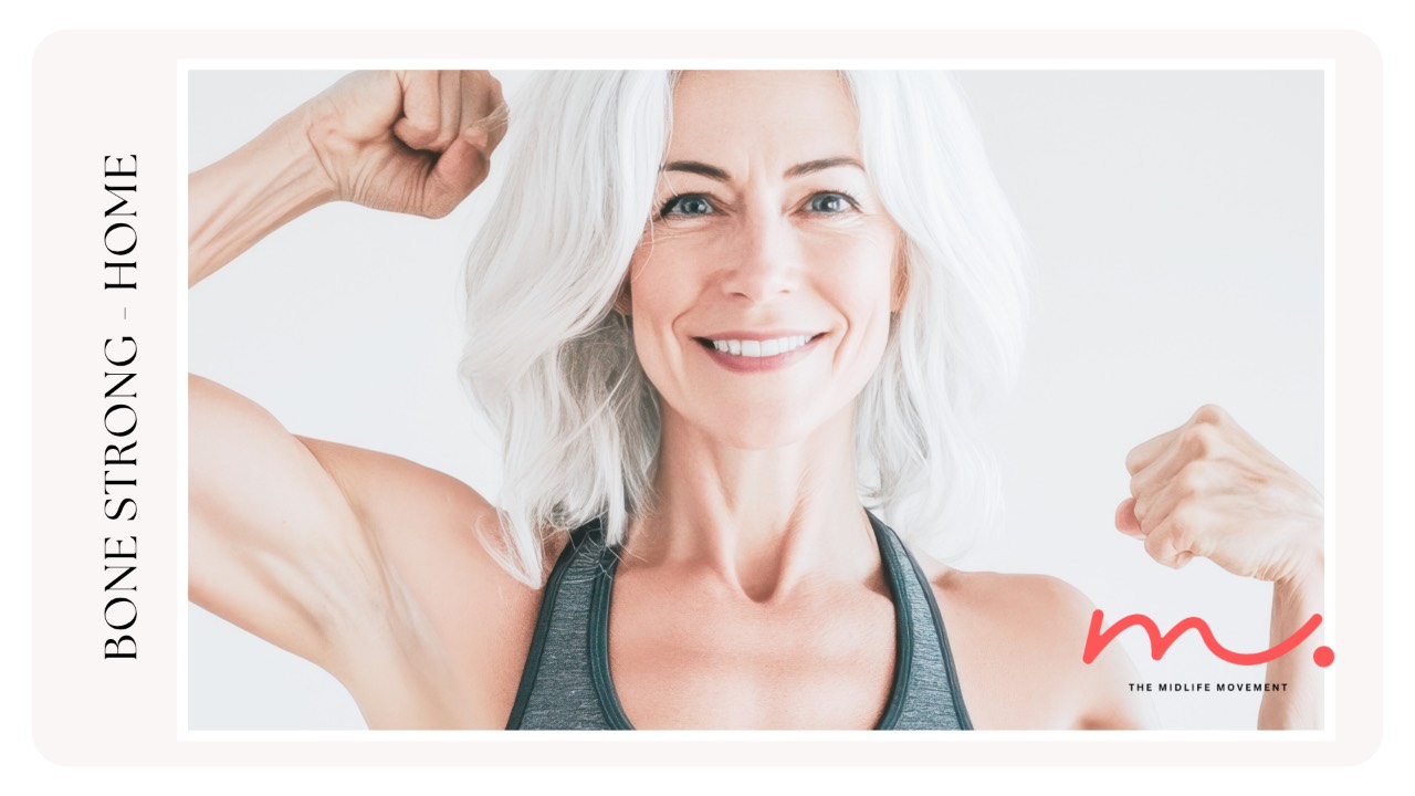 Your bones work hard every day — and it’s time to give them the attention they deserve. Bone Strong – Home (Beginner) is a 6-week, self-paced program designed specifically for midlife women who want to build stronger bones, improve balance, and feel more confident in everyday life.
