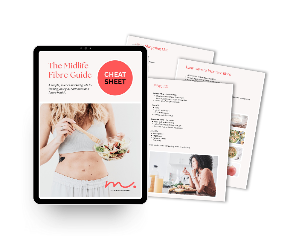 A clear breakdown of why fibre matters more in midlife A fibre-rich shopping list that’s actually usable Easy, real-life meal ideas to hit your fibre goals without stress